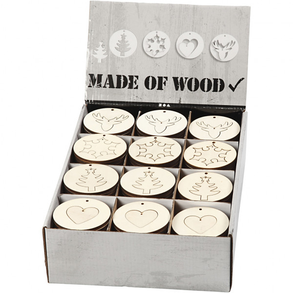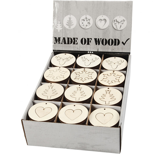 Hänge-Dekoration 2 in1 - Sortiment, D: 7 cm, Stärke: 4 mm, Sperrholz, 200Stck. [HOB-56509]