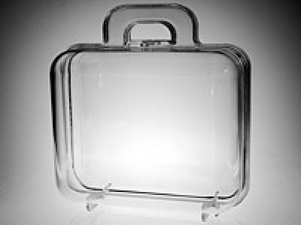 Rigid Acrylic and super clear Suitcases, two hinges make these suitcases easy to open and close. Nice for filling with candy or other small items. No tape needed.
