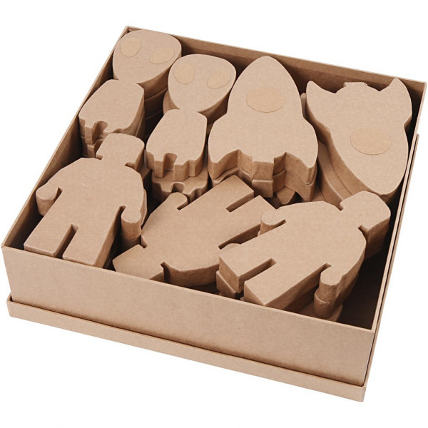 Sortiment von versch. Figuren aus braunem Pappmaché.