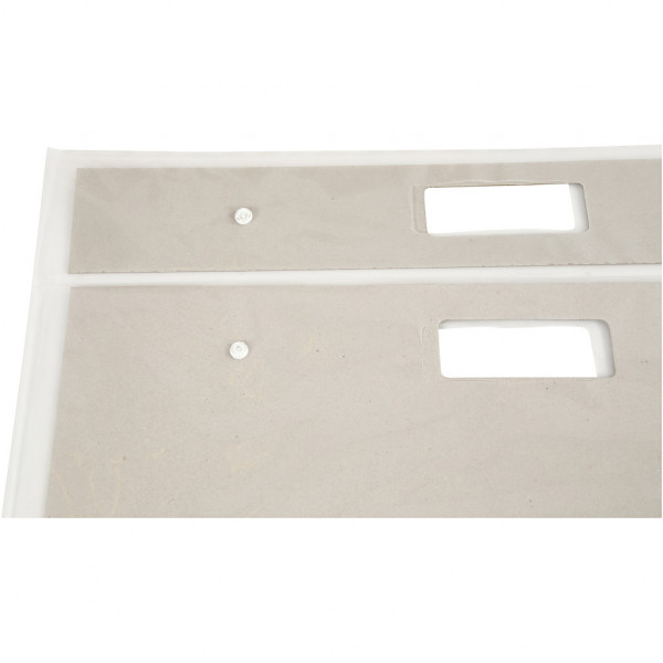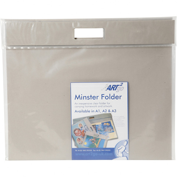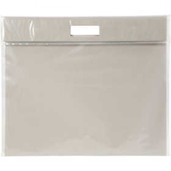 Hochwertige Künstlermappe aus Transparentfolie mit Innenverstärkung - hohe Faltklappe, Klettverschluss, Griffausschnitt.