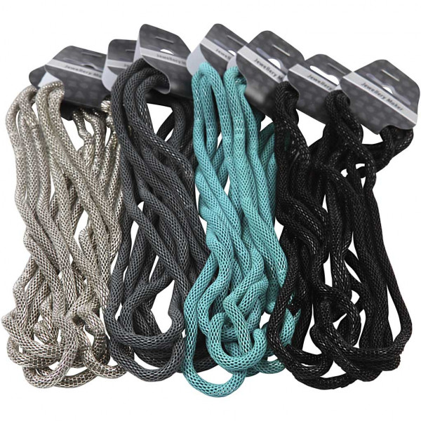 Schmuckketten aus Metall mit Öffnungs-/Schließmechanismus - jede Kette ist 160 cm lang.