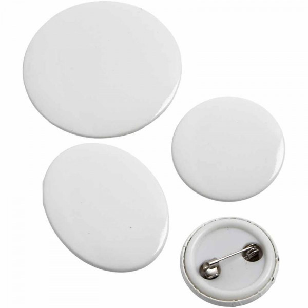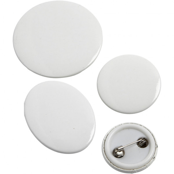Runde und ovale Anstecker aus weißem Metall - Vorderseite dekorierbar - Packung mit 4 Designs á 25 Stck.