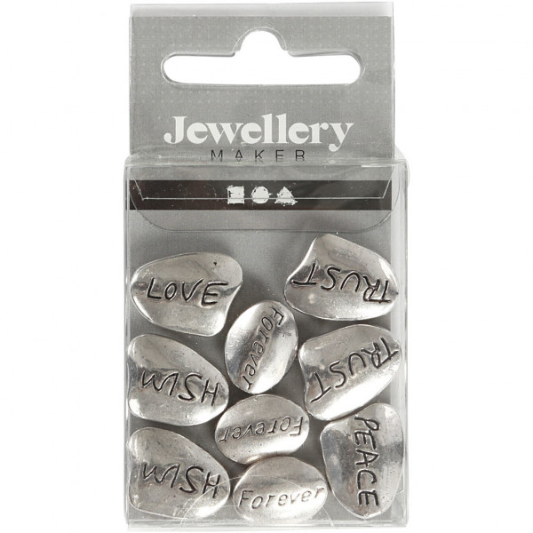 Perlen mit Text, L 16 mm, Lochgröße 1 mm, Antiksilber, 9sort. [HOB-63272]