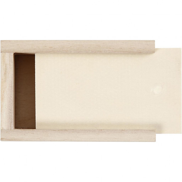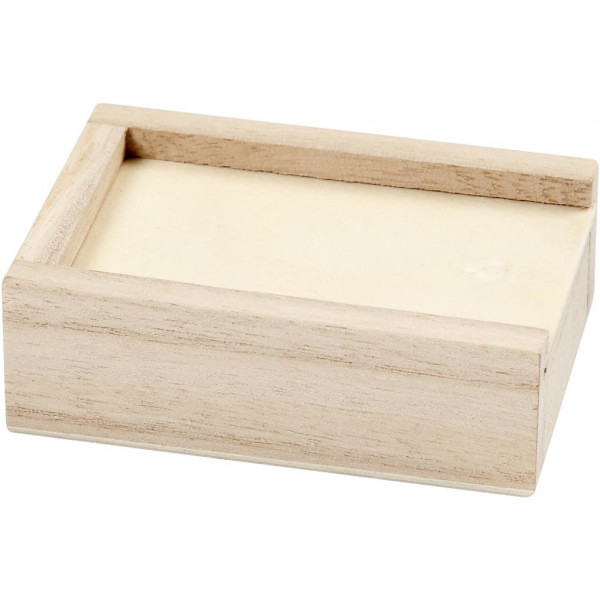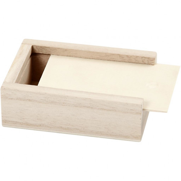 Kleine Box aus hellem Holz mit Schiebedeckel.