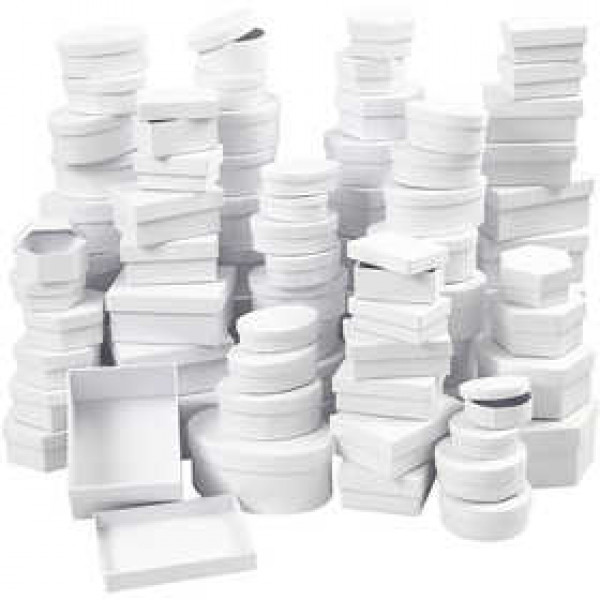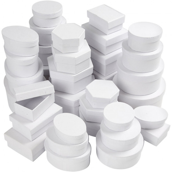 Das Set enthält verschiedene weiße Schachteln aus festem Karton.