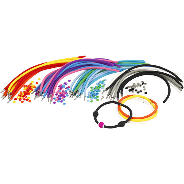 Packung mit 48 sort. Armbändern und 192 Stop-Ringen.