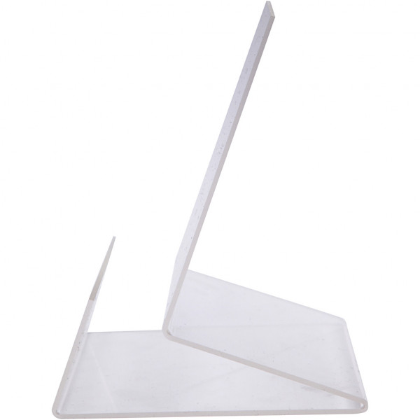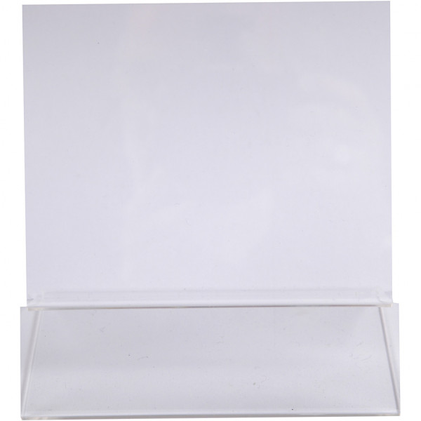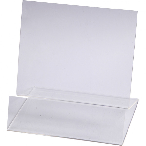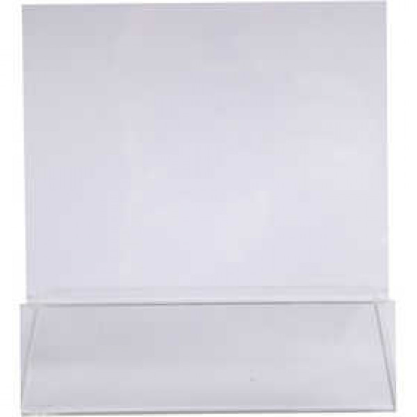 Schrägstehender Schild-/Prospekthalter aus durchsichtigem Acryl.