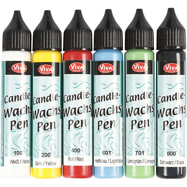 Stifte mit farbigem Flüssigwachs für Kerzenbemalungen - Farbe direkt mit dem Stift auftragen.