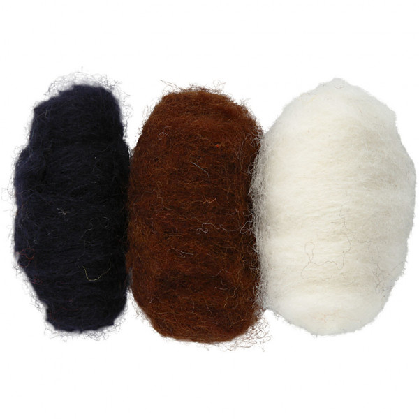 Kardierte Wolle, Harmonie in Schwarz-Creme-Braun, 3x10g [HOB-45338]