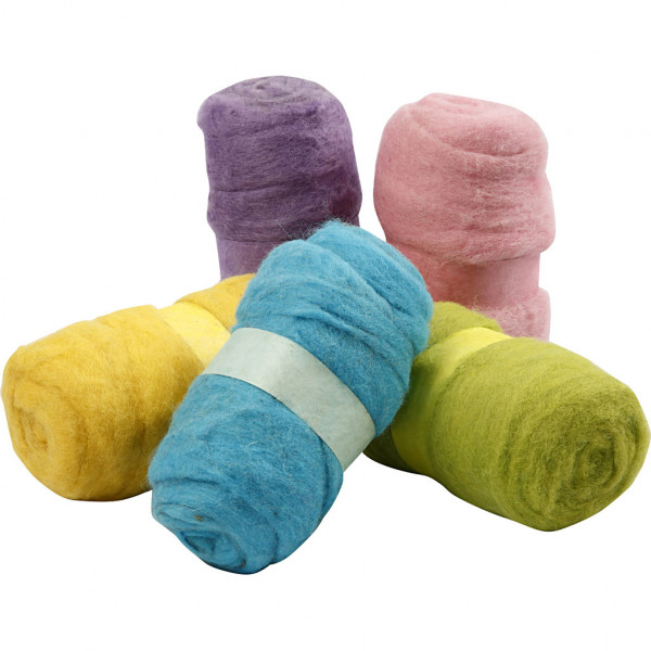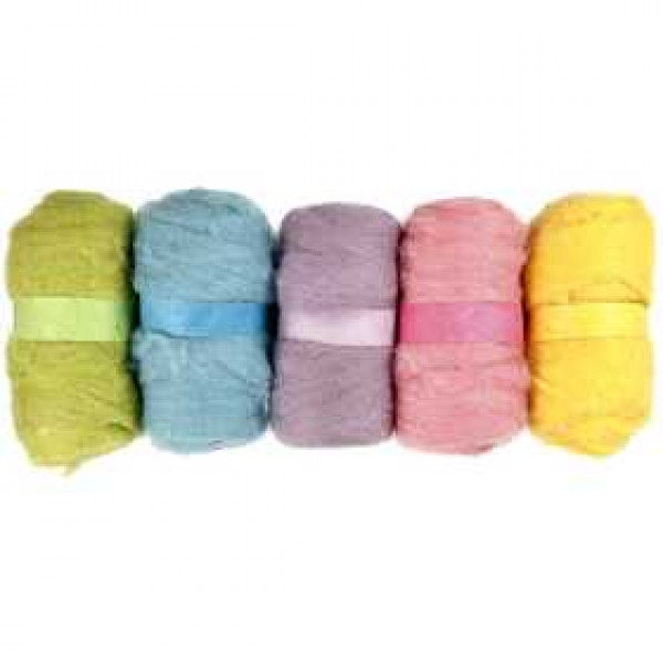 Kardierte Wolle, Pastelltöne, 5x100g [HOB-45125]