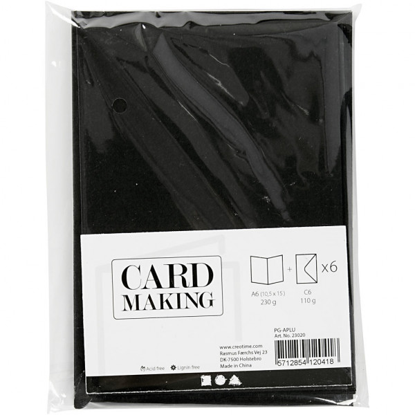 Karten und Kuverts, Kartengröße 10,5x15 cm, Umschlaggröße 11,5x16,5 cm, Schwarz, 6Sets [HOB-23020]