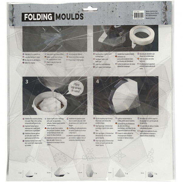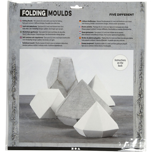 Set mit 5 faltbaren Formen aus dünnem Kunststoff mit Falzkanten - leicht mit Klebeband zusammenzufügen - nach Reinigung erneut verwendbar.
