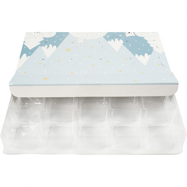 Adventskalender, mit Aufdruck, Größe 38,5x38,5 cm, Stärke: 5,5 cm, 1Stck, Lochgröße 6,8x6,8+6,8x14,2 cm [HOB-23318]