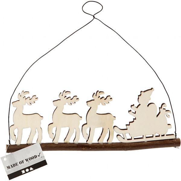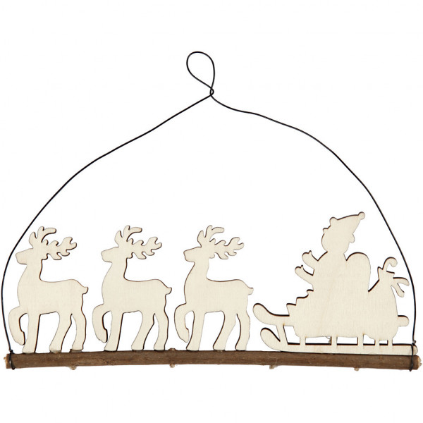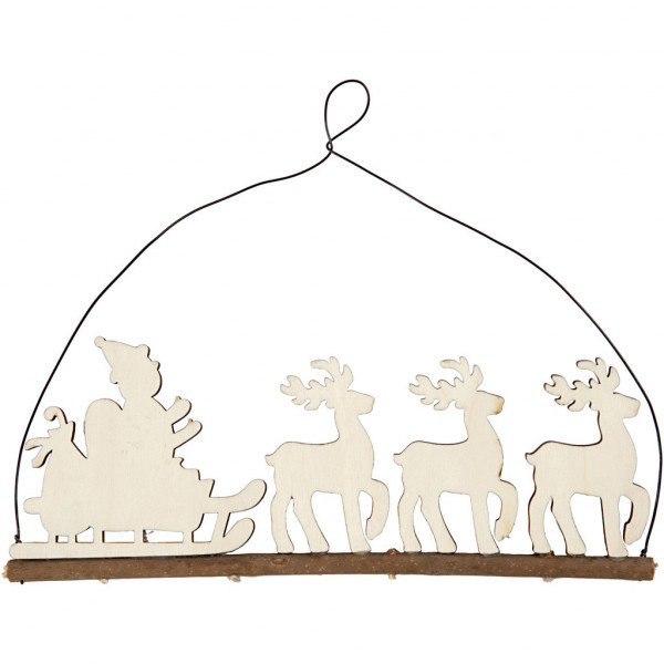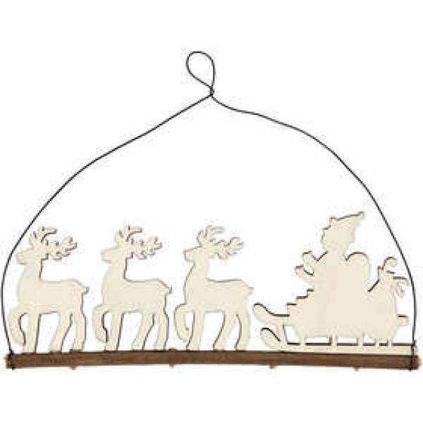 Weihnachtsschmuck, Schlitten mit Rentieren, H 8 cm, B 22 cm, Sperrholz, 1Stck, Tiefe 0,5 cm [HOB-55322]