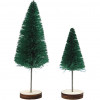Kleine Tannen aus Nylon-Borsten und gedrehtem Draht - mit kleinen Holztellern für den festen Stand - zur Gestaltung von weihnachtlichen Landschaften auf Fensterbänken o.ä.