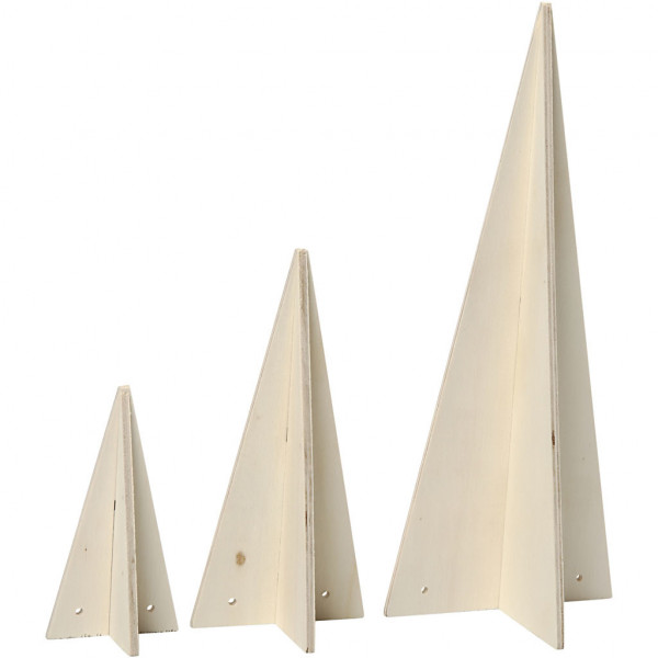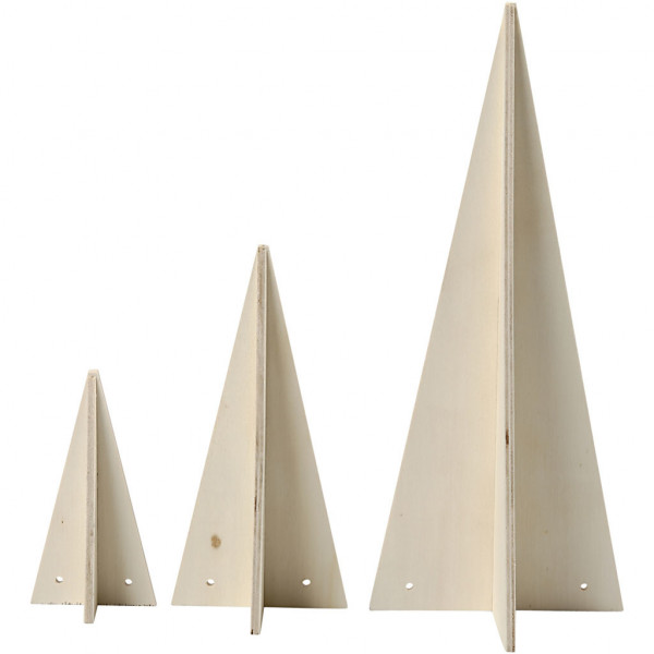 Weihnachtsbaum als Kegel, H 10+15+25 cm, D: 10+7+5 cm, Sperrholz, 3Stck. [HOB-56412]
