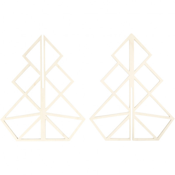 Heller Weihnachtsbaum als geometrische Figur aus 3 mm dickem Holz - bestehend aus 2 ineinandergesteckten Teilen.