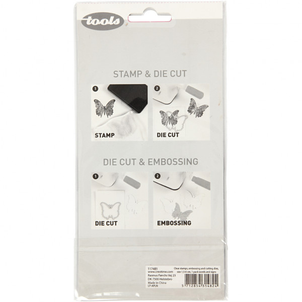 Set of clear silicone stamps, which can be combined with the supplied die cut and embossing templates. For punching in cardboard, paper, card and the like. Used in Die Cut and Embossing Machine - Item no. 11761, 11792 and 11799.