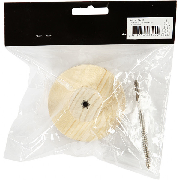 Garderobe, Runde Platte, D: 7 cm, Tiefe 4,5 cm, Kiefernholz, 1Stck [HOB-54405]