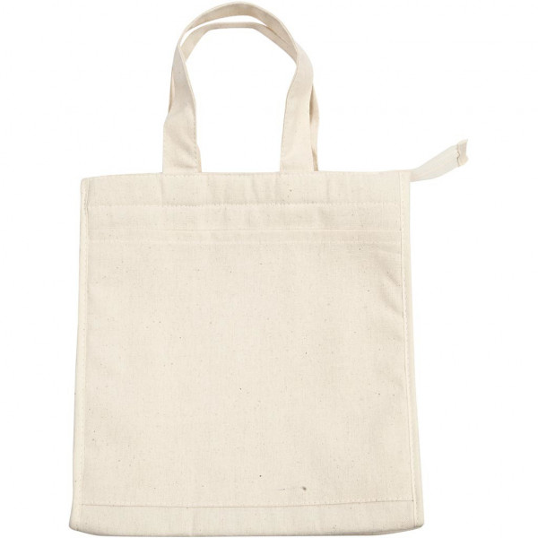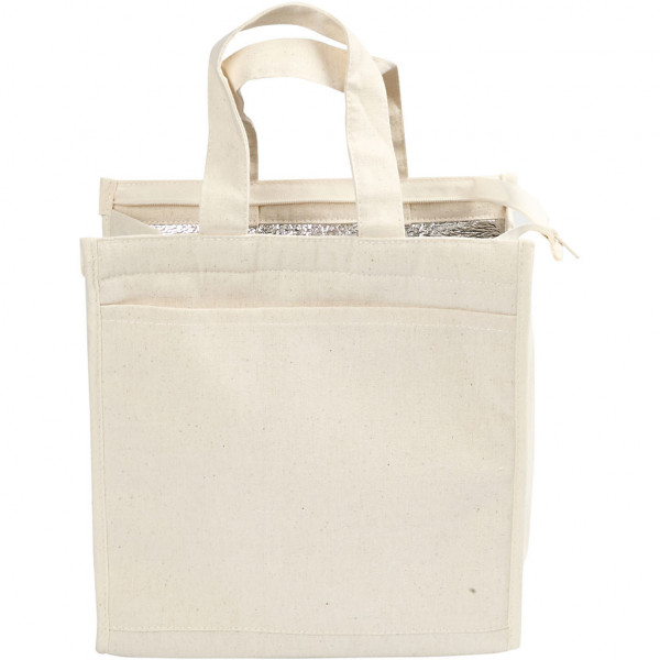 Kleine Kühltasche mit Griff und Reißverschluss - Baumwolle (220 g / m2). Der Stoff kann mit Texil-Markern oder Stofffarbe verziert werden. Die Innenseite besteht aus isolierender Folie.