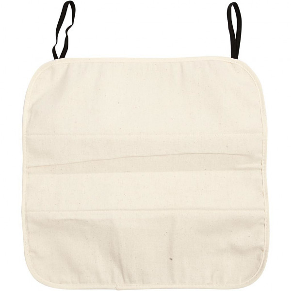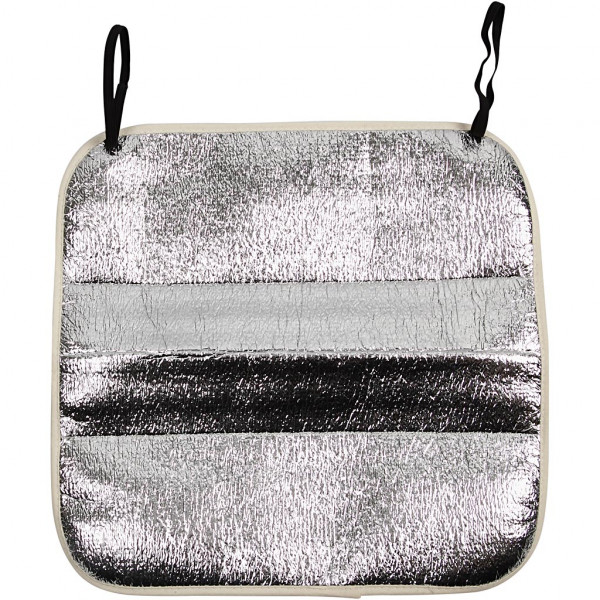 Faltbare Sitzunterlage aus Baumwolle (220 g) - die Vorderseite kann beliebig gestaltet werden, z.B. mit Stoff-Markern oder Stofffarbe, die Rückseite hat eine isolierende Folie.