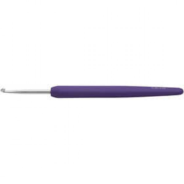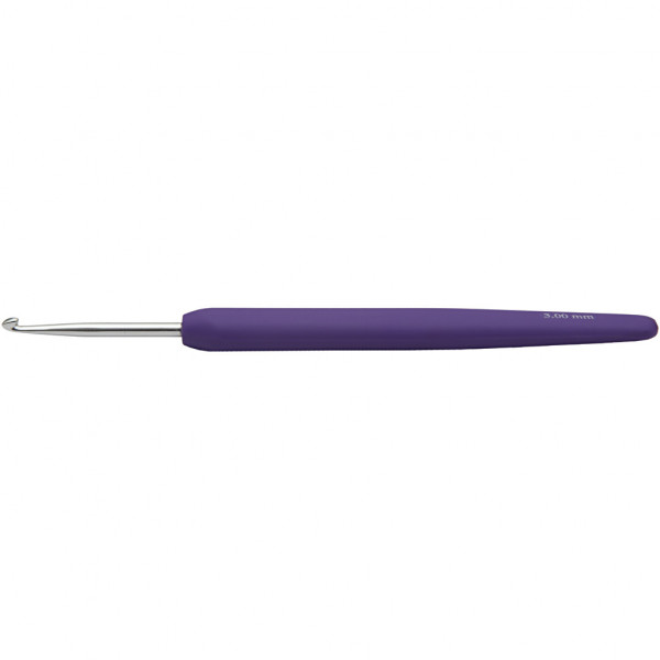 Häkelnadel aus Aluminium mit ergonomisch geformtem 'Softtouch'-Kunststoffgriff.