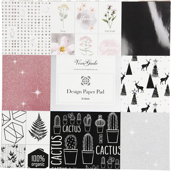 Abreißblock - 36 quadratische Blätter mit 18 verschdn. Mustern - Design Vivi Gade - einseitig bedruckt mit und ohne Details in Metallfolie - beidseitig vollflächig bedruckt mit Lack- oder Glitter-Oberfläche.