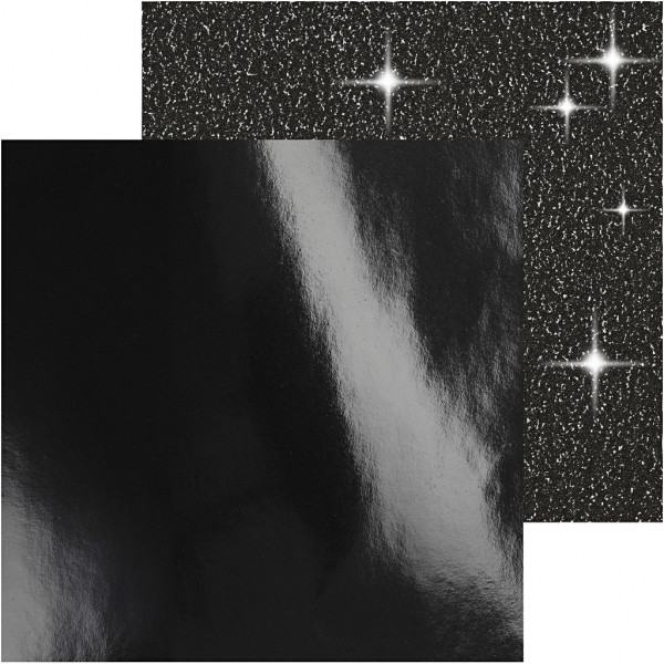 Design Papier, Blatt 30,5x30,5 cm, 120+128 g, Schwarz, 2Bl., [HOB-26333]