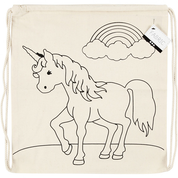 Kordelzug-Beutel, Größe 37x41 cm,  110 g/qm, Hellnatur, Einhörner, 1Stck [HOB-499652]