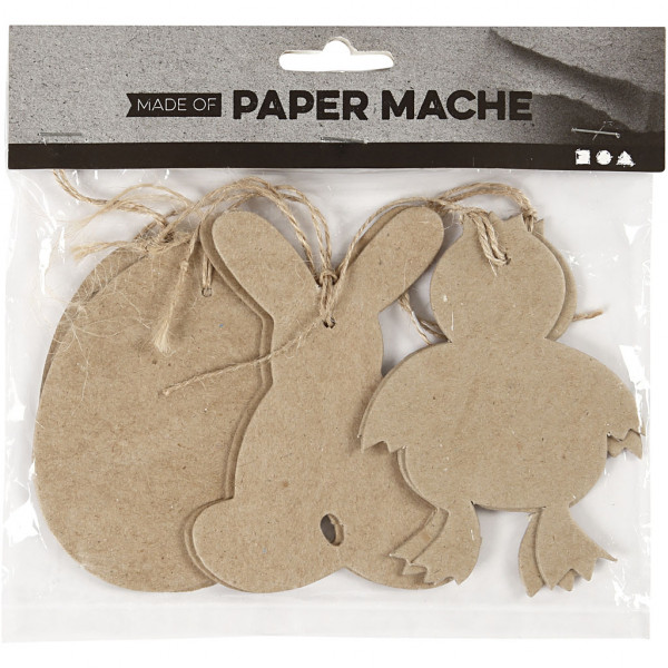 Flache, handgearbeitete Osterdeko aus Pappmaché, zum Aufhängen.