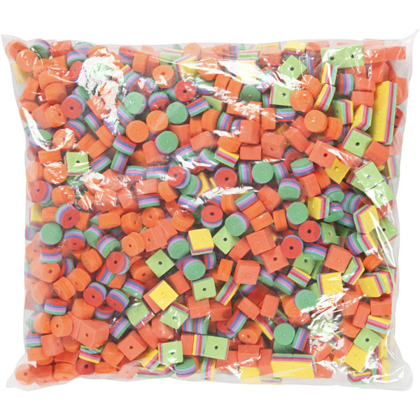 Moosgummi-Perlen, D: 15 mm, Lochgröße 3 mm, 864sort. [HOB-79013]