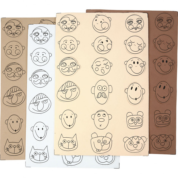 Gesichter aus Moosgummi, D: 30-40 mm, Stärke: 2 mm, 72sort. [HOB-79005]