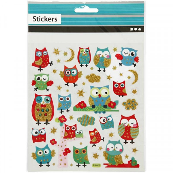Sticker, Blatt 15x16,5 cm, Eulen, 1Bl. [HOB-28909]