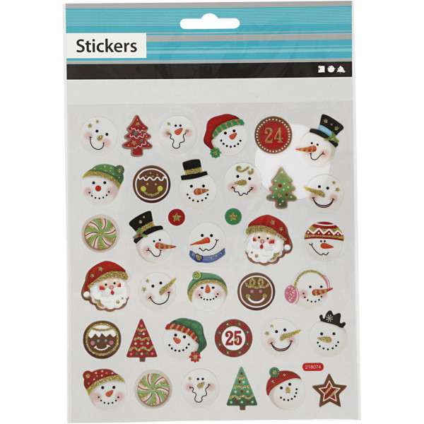 Selbstklebende Motive aus dünner und leicht transparenter Kunststofffolie mit Details aus Glitter.