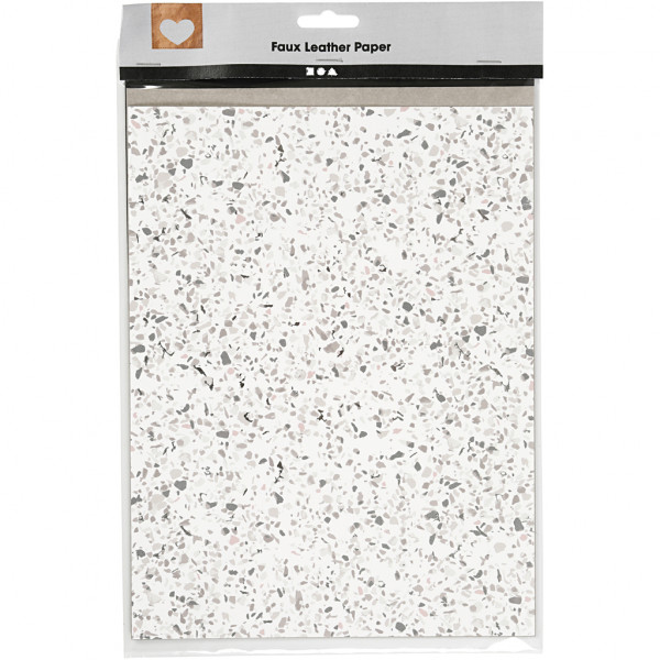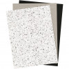 Faux Leather Paper, sheet 21x27.5+21x28.5+21x29.5 cm, thickness 0.55 mm, 3 sheets, grey, white, black [HOB-498834]