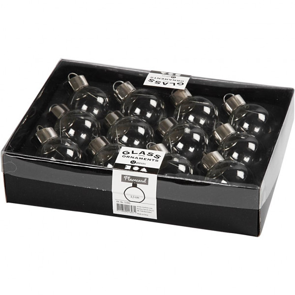 Glaskugel mit flachem Boden, D: 3,5 cm, H 4 cm, Transparent, 12Stck. [HOB-55945]