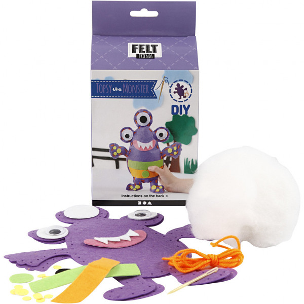Das Set enthält alles, was man zum Basteln einer lustigen Filz-Figur benötigt. Die vorgeschnittenen Filzteile haben gelochte Kanten zum einfachen Zusammennähnen. Die Deko-Elemente sind selbstklebend.