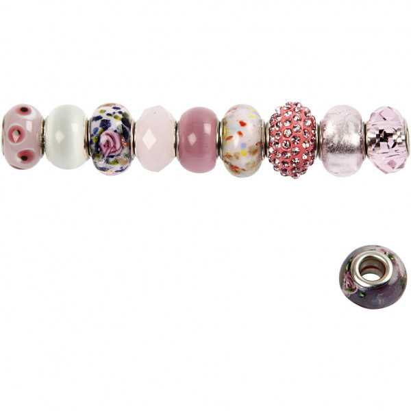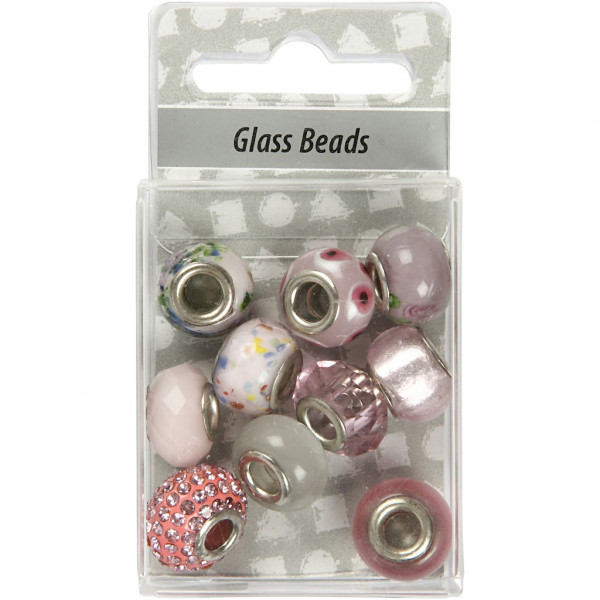 Glasperlen Harmonie, D: 13-15 mm, Lochgröße 4,5-5 mm, Rosétöne, 10sort. [HOB-68774]