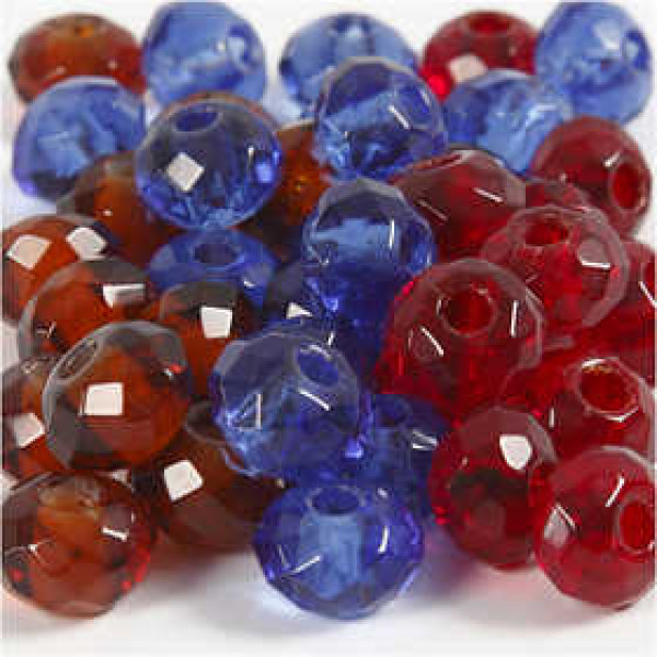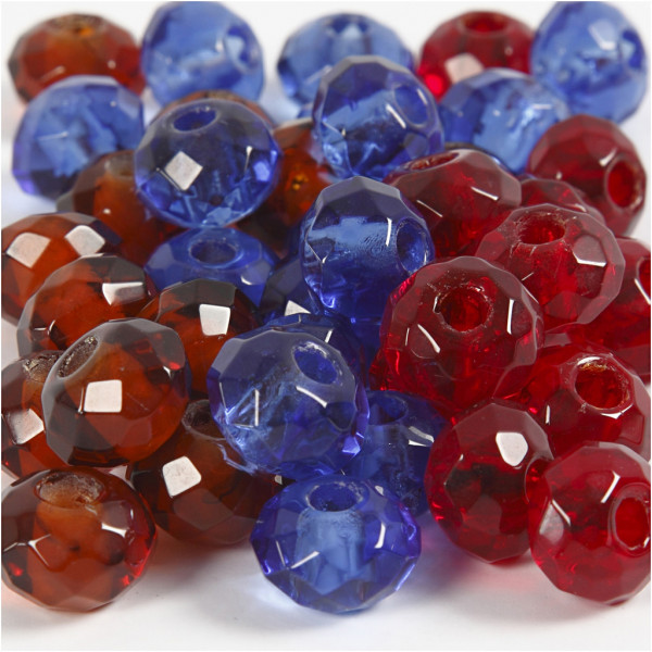Runde Glasperlen mit großer Bohrung und handgefertigtem Facettenschliff.