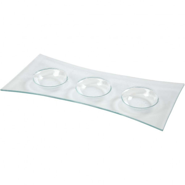 Länglich, transparentes Glas, mit 3 Unterteilungen für Teelichte.