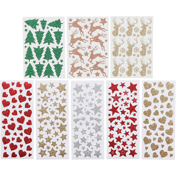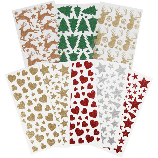 Sortiment selbstklebender Sticker mit Motiven aus glitzernder Spezialfolie.