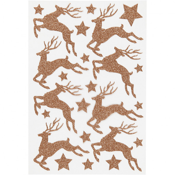 Glitzer-Sticker, Blatt 12x18,5 cm, Kupfer, Hirsche, 1Bl. [HOB-27003]