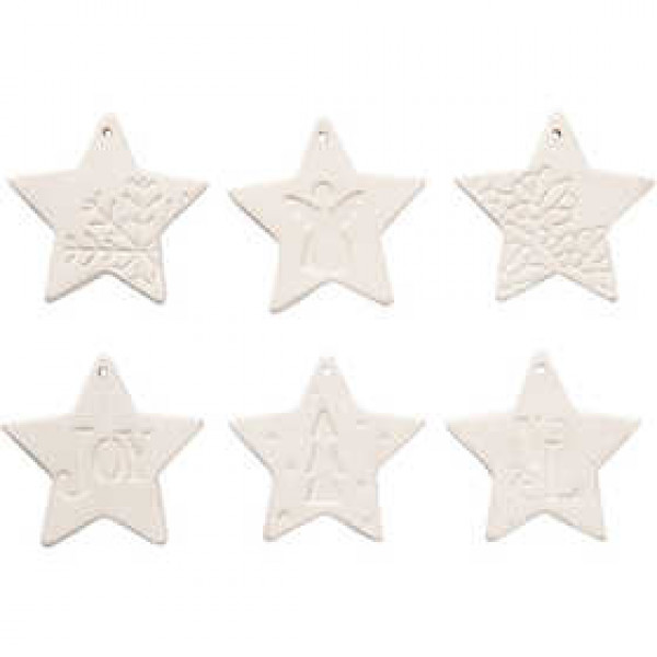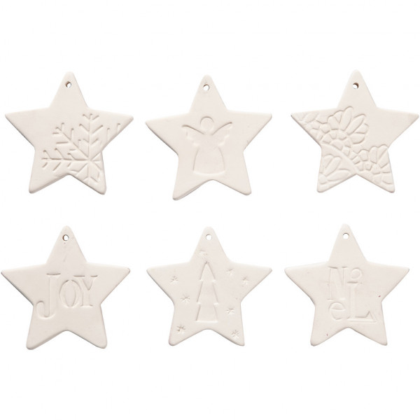 Anhänger, Sterne, Größe 7x7 cm, Stärke: 6 mm, Weiß, 6Stck. [HOB-555150]