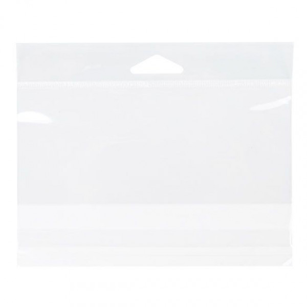 Our crystal clear hanging bags are ready for the retail environment. Our HB52 bag measures 149 x 64 mm and is an excellent choice for packaging toys, art, candy, paper products, crafts supplies, and anything else you might want to package. The material of this bag is 40 micron thick and is made from high-quality Biaxially Oriented Polypropylene (BOPP) plastic film for a professional presentation with exceptional clarity. This bag is bottom-loading and has a resealable adhesive on the bottom flap. A reinforced hanging strip with delta hole works well for any standard peg display. Your product will get noticed in this crystal clear packaging. This bag is food safe and acid-free.