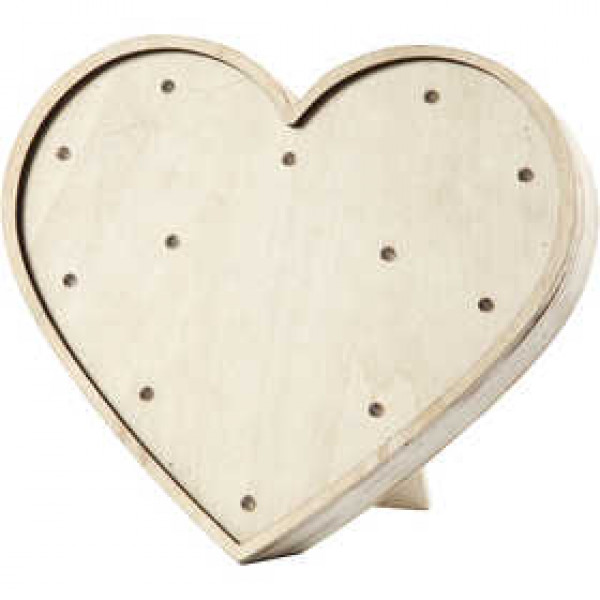 Leuchtherz aus Holz, 2 Stück je Set, H 21 cm, B 23,5 cm, Sperrholz, 1Stck [HOB-561662]