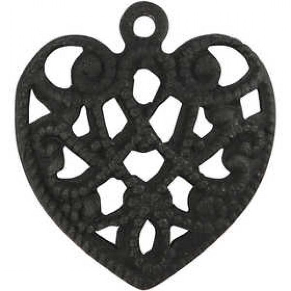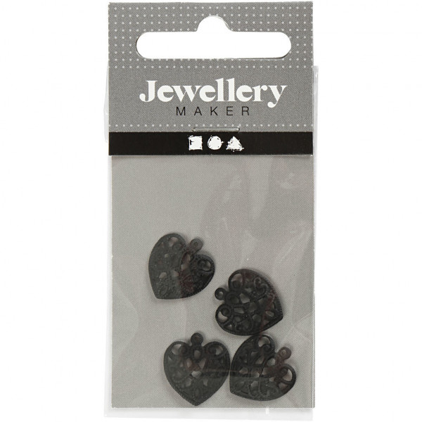 Herz, Größe 13x14 mm, Lochgröße 1 mm, Schwarz, 4Stck. [HOB-60586]