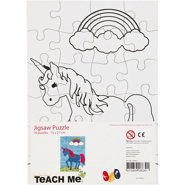 Puzzle aus festem Karton mit Teach Me® - Motiven - zum Ausmalen.