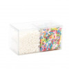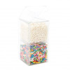 Nested packaging is created by placing smaller boxes inside one larger outer box. Our NBS7 set two 38 x 38 x 38 mm cubes that fit inside an outer container that measures 41 x 41 x 79 mm . NBS7 is our Nested Box Set that is perfect for couples! This set is ideal for holding two pieces of chocolates but works great for any pairing. Package herbs, spices, favors, and more. These nesting gift boxes are made from food safe PET material and provide a stunning display. This set is easily assembled with auto locking bottoms that shape into place. Durable and 12 mil thick, these boxes won't easily crack or become brittle.