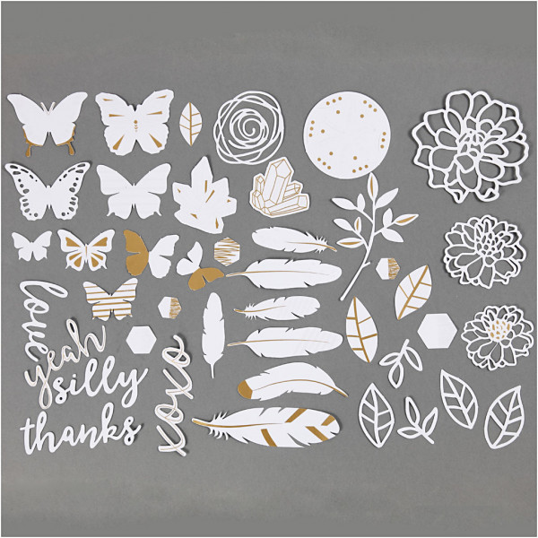 Papier zum Bemalen mit Aquarellfarbe - bedruckt mitt Goldmotiven, Größe 1,5-10 cm, 44sort. [HOB-25779]