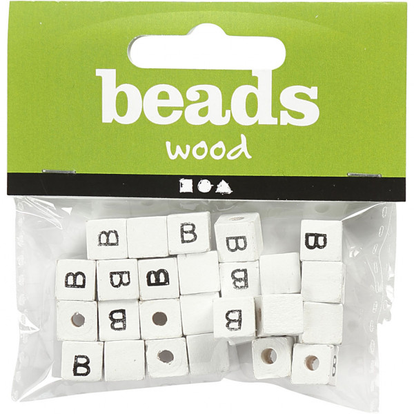 Buchstaben-Perle, Größe 8x8 mm, Lochgröße 3 mm, Weiß, Grass tree, B, 25Stck. [HOB-68952]
